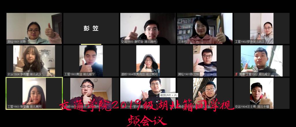 隔空传递爱,关心不断线。交通学院党委副书记王煜坤强调学院学生工作始终以学生为本,此次疫情当中,我们重点加强湖北籍学生的思想引导、心理疏导和学习生活指导,切实帮助他们解决实际困难,引导他们在加强防护的同时,努力发挥不抱怨、埋头干、敢担当、勇争先的交通青年精神,以饱满的姿态坚持到这场战的最终胜利!