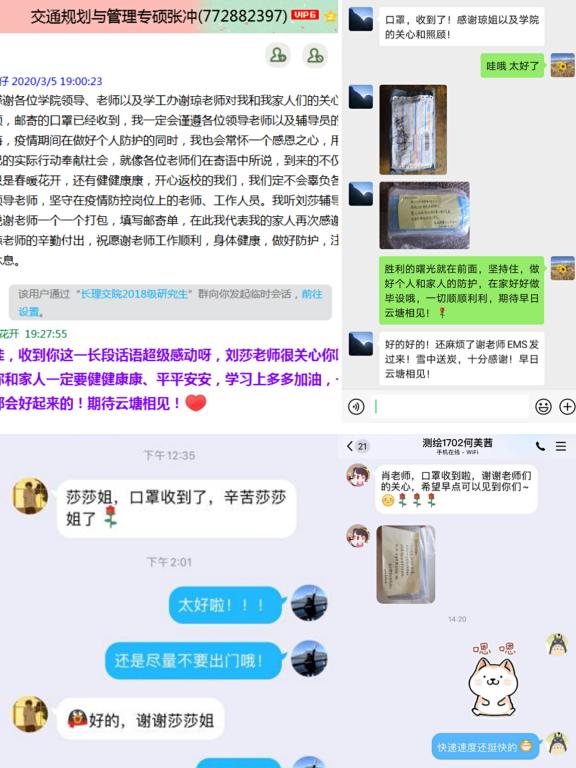 自开展疫情防控工作以来,交通学院学生工作团队扎实推进疫情排查百分百、学生群体全覆盖这项基础工作,落实落细落到位各项疫情防控措施,全方位对学院学生进行指导和服务。对于湖北籍学生,老师们尤为关心,关注到湖北籍学生的实际困难,并从思想提升、学业就业帮扶、困难补助、心理疏导等方面为学生送去温暖。