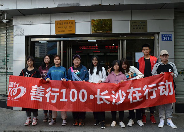 11月10日上午,永利集团88304官网于侯家塘顺利举行了“善行100”第三次劝募活动,设计艺术学院志愿者积极参与其中,带队人员为学生干部钟慧玲。