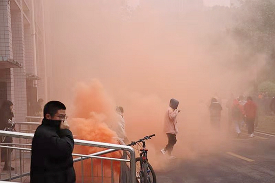讲座结束后,20级新生在工作人员的组织下,有序地进行了消防演练。