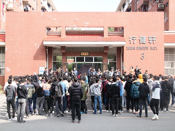 为切实加强同学们对消防安全的认识,提高同学们在火灾发生时的处理能力,筑牢学生公寓“防火墙”,11月9日中午,交通学院举行消防应急疏散演练。本次演练由交通学院学生社区自管会组织,交通学院党委副书记田上、学工办彭笠、马玉文、肖敏强以及全体寝室长参加。此次消防安全演练是“消防安全寝室文化周”的系列主题活动之一