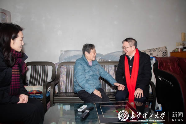 当天,付宏渊一行还专程来到已有93岁高龄的老党员干部侯淑珍家中看望慰问。付宏渊细心询问了侯老的身体和生活情况,听取了她对学校工作的意见建议,并感谢老一辈长理人为学校发展建设付出的辛勤努力和作出的重要贡献,祝愿他们新春愉快,健康长寿。付宏渊表示,学校将持续服务好老同志,及时帮助解决大家的“急难愁盼”问题,希望老同志一如既往关心支持学校的各项工作,为学校高质量发展建言献策。侯淑珍老人对学校如今的发展成就感到无比欣慰和自豪,她表示,虽已离开工作岗位,但始终心系学校,时刻关注着学校建设和发展,感谢学校党委对离退休老同志的关怀爱护,将继续关注和支持学校的工作,为学校的发展贡献自己的力量。