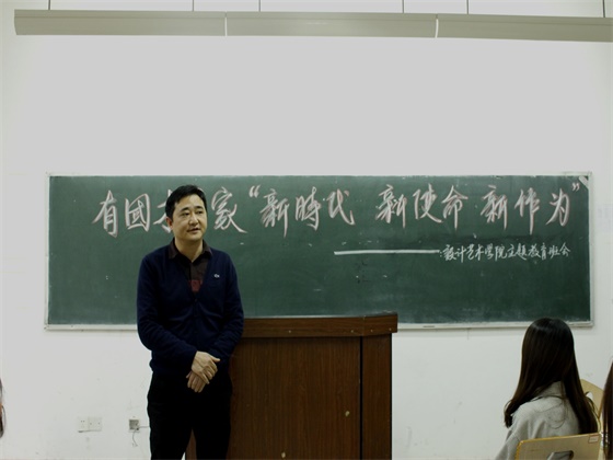 “祖国强大,人民才有安全和尊严,中国进入新时代,广大青年学子要珍惜时间,奋发学习,报效祖国。”设计艺术学院院长王健亲自参加环艺1601班班会,并向同学们提出殷切期望。