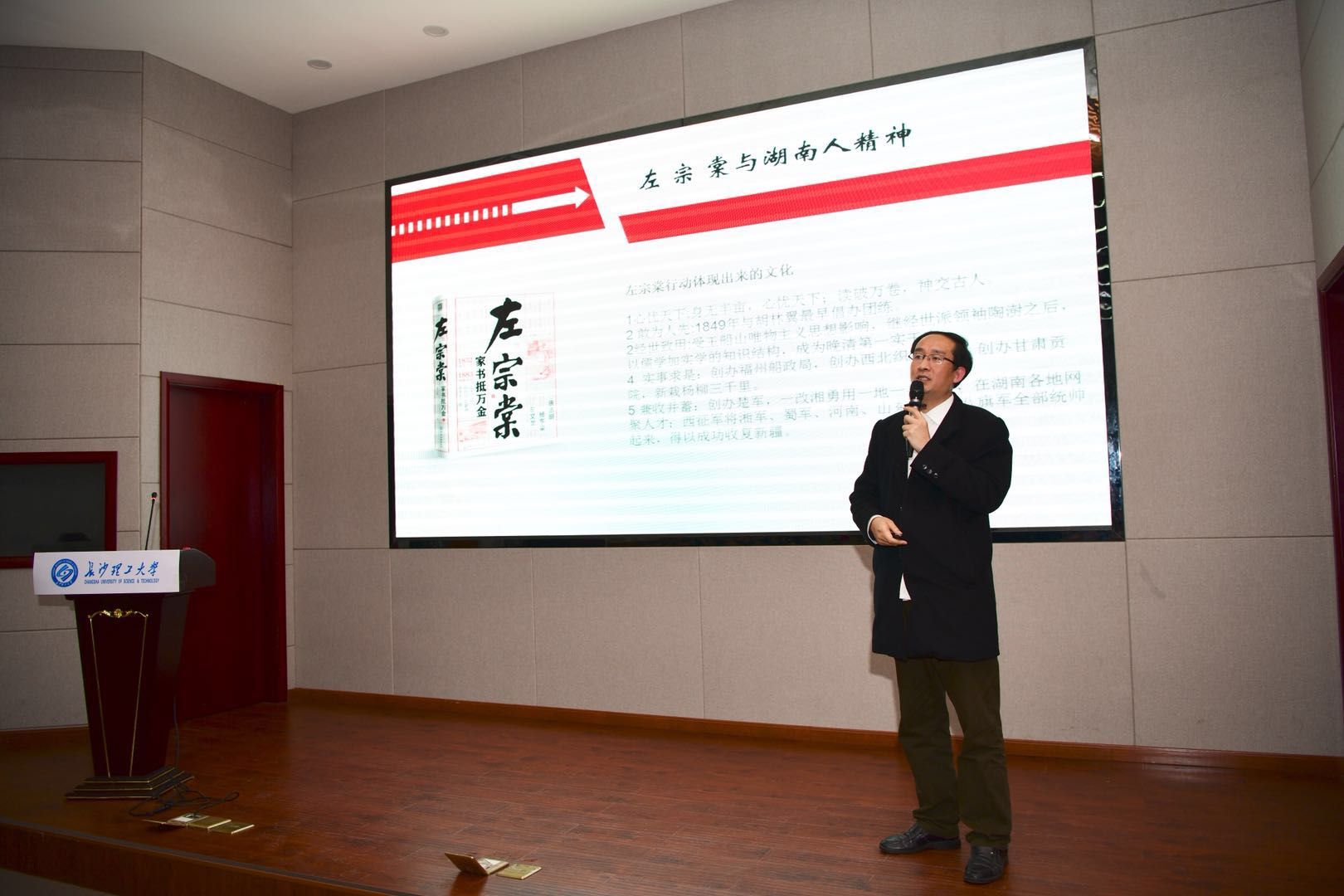42日下午,以溯文化名人足迹,论湖湘文脉初心为主题的探寻湖湘文化印记之溯源左宗棠主题论坛活动在永利官网交通学院报告厅举行。著名作家、当代湖湘文化拓新者、左宗棠研究者徐志频主讲,湖南师范大学教授、原省委宣传部副部长、省社科联主席郑佳明,省人民政府参事、永利官网成松柳教授出席,省作家协会副主席、湖南日报教科文卫新闻中心执行主任、《湘江周刊》主编龚旭东主持。交通学院和文法学院师生两百余人参加活动。