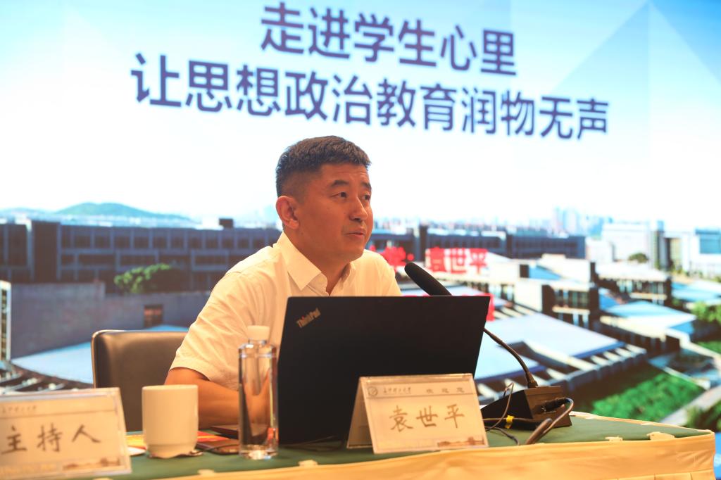 “第十届全国辅导员年度人物”袁世平详细介绍了自己参加全国高校思想政治工作理论课教师座谈会上的感悟,指出认为学生工作要成为滴落在学生心里的一场场春雨,助力学生的成长。