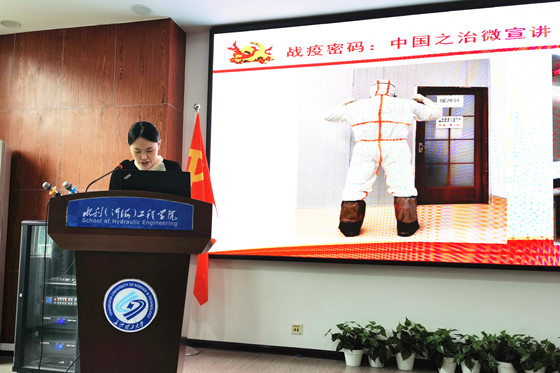 7月3日下午,水利工程学院在工三B319举行“战疫密码:中国之治”宣讲活动。院党委书记喻玲娜主持本次宣讲活动,全院教职工聆听了危润初、刘智光、周璐三位老师的宣讲。