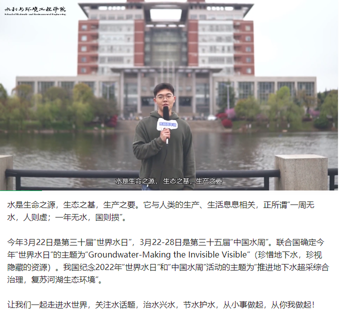 3月22日至28日,水利学院开展了第三十届“世界水日”暨第三十五届“中国水周”系列活动。通过主题宣讲、主题竞赛、志愿服务等方式,加强公众对地下水资源的重视,促进河湖环境复苏,营造全民节水护水的良好氛围。