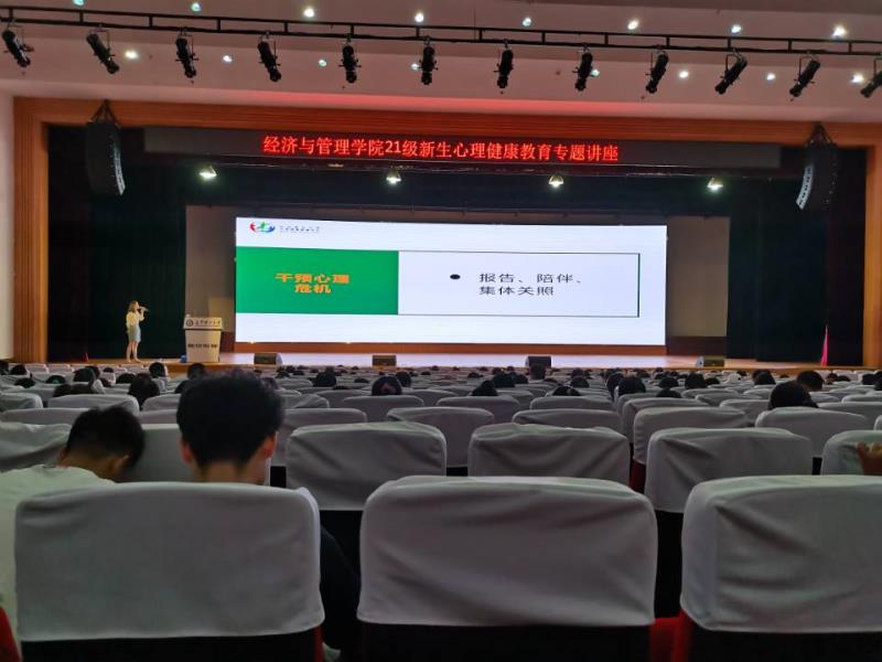 为普及心理健康知识,帮助新生解决入学面临的各种心理问题,我院于9月28日下午2:30,在五号教学楼大礼堂举行了"21级新生心理健康教育专题讲座"。本次讲座有幸邀请了湘潭大学心理健康教育中心副主任程燕副教授,永利集团88304官网心理健康教育中心易敏老师进行主讲。参与本次讲座的有21级新生辅导员王宝宝老师和肖翠老师, 学院心理辅导员何艳芝老师,研究生辅导员陈莹老师,以及经管学院全体21级本科新生、研一新生。此次讲座由王宝宝老师主持。