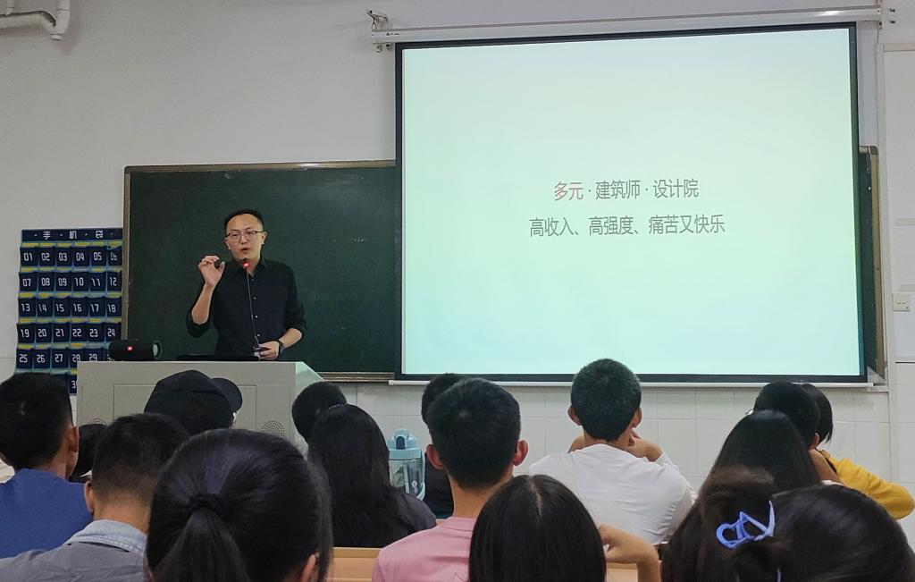 “建筑学真的是个坑吗?”“为什么那么多人劝退建筑学?”“建筑学的未来是怎么样的?”带着学生提出的疑问,吴世海从建筑学到底是什么,建筑学到底好不好,未来的我们又该何去何从等几个方面,从华丽宏伟的卢浮宫,隐匿于山间的古村落群,以及身边的一砖一瓦,带领大家跨越时空真实地去感受建筑学的内涵。报告中,吴世海以自己求学、教书、走进工地参与施工规划的丰富人生阅历和对建筑学的理解,用实际案例呈现建筑学之于人民美好生活的巨大作用,以及建筑师在这些作品中个人才华、能力和价值的体现,充分展示出了建筑学的多元化和深底蕴。最后,同学们纷纷举手提问,吴世海对大家的疑惑进行了耐心专业的解答。