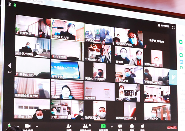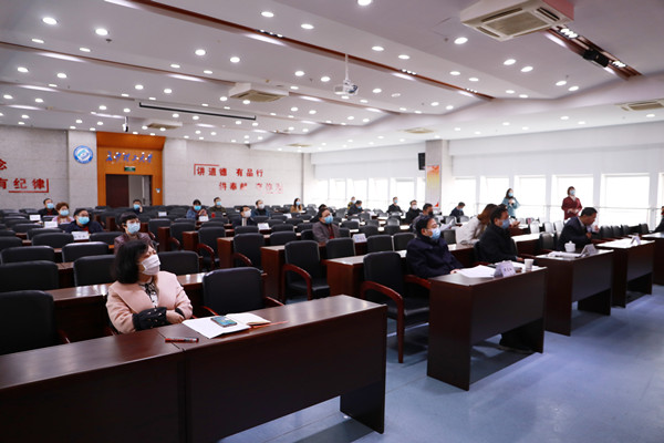 本次会议严格按照疫情防控 “不聚集”的要求,全体校领导、机关职能部门主要负责人在主会场隔排就座参会,座位距离1米以上。各学院、教辅及其他机构主要负责人在本单位会议室通过视频同步在线参会。