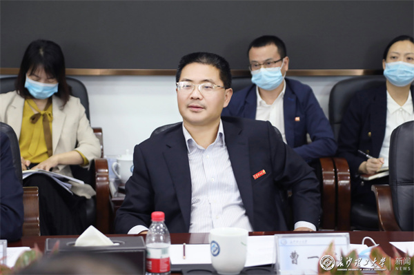 付宏渊就学校发展建设情况作了汇报。付宏渊表示,学校始终坚持“党办的大学让党放心,人民的大学不负人民”的价值追求,始终把“全面贯彻党的教育方针,落实立德树人根本任务,办好人民满意的教育”作为办学宗旨,始终把坚持“四个面向”作为学校应有的使命和担当,全面推进了学校发展。付宏渊从以习近平新时代中国特色社会主义思想为指引、坚持社会主义办学方向,坚守“为党育人、为国育才”初心使命、全面提升人才自主培养质量,以人民为中心、扩大优质高等教育资源供给,增强核心竞争力、大力服务“三高四新”战略定位和使命任务等四个方面汇报了学校的办学情况和取得的成绩,并介绍了今后学校发展目标和服务现代化新湖南建设的规划。