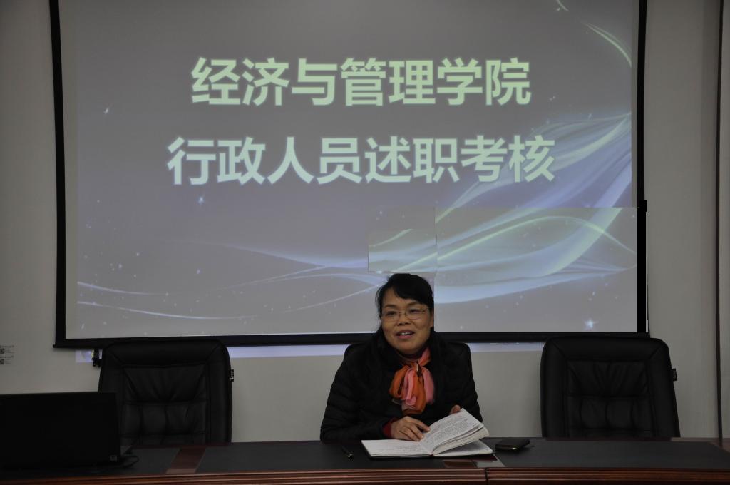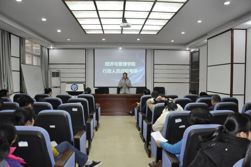 1月4日上午,经管学院开展机关行政人员年终述职考核工作。学院党政全体领导出席,全体行政人员参加了此次述职。
