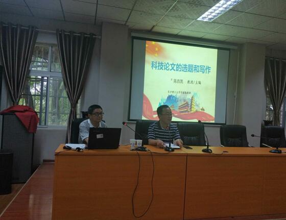 5月11日下午,城南学院在金盆岭二教大会议室组织召开“科研论文写作规范与选题指导”主题报告会,《永利集团88304官网学报》编辑部主任兼科研部副部长陈浩凯教授主讲。院长赵华教授、全体学工人员参加报告会,会议由院党委副书记王明彦主持。