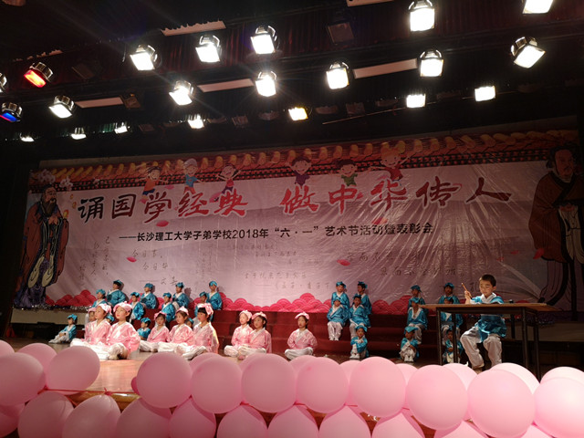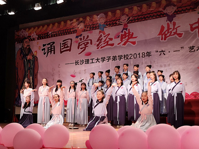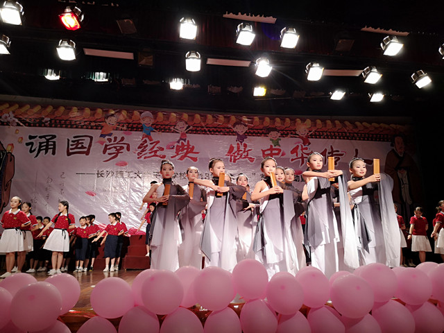 本次活动以“诵国学经典,做中华传人”为主题。中华民族是五千年的文明古国,有着无比灿烂的历史和取之不尽的国学智慧。孩子们吟诵国学经典,感受中华民族深厚底蕴,传承延绵不息的中华精神,以朗朗书声庆祝自己的节日。活动在管乐团气势磅礴的演奏中拉开序幕,全校学生以班为单位上台表演。孩子们或吟或唱或舞或弹或书,节目形式各异,精彩纷呈,再配上优美的服装造型和背景音乐,给观众带来了一场精彩的国学视听盛宴,展示了孩子们的出色才艺和老师们的指导智慧。