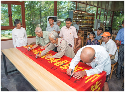 宋刘斌宣读表彰文件,并为受表彰的优秀共产党员颁奖。随后,优秀共产党员代表杨忠祥、杨艳群分别作了交流发言。他们回顾了近年来的所做、所思、所见,村里每天发生的变化离不开党和政府的关心,离不开驻村干部的无私奉献,离不开全村干部群众的勤劳和智慧。打铁需要自身硬,作一名有事业的农民,必须坚持自力更生,人穷志不穷,一定要配合扶贫工作队做好脱贫攻坚工作。活动结束后党员们纷纷在横幅上认真签下自己的名字,既表达了对祖国美好明天的祝愿,也表达了跟党走的信心和决心。