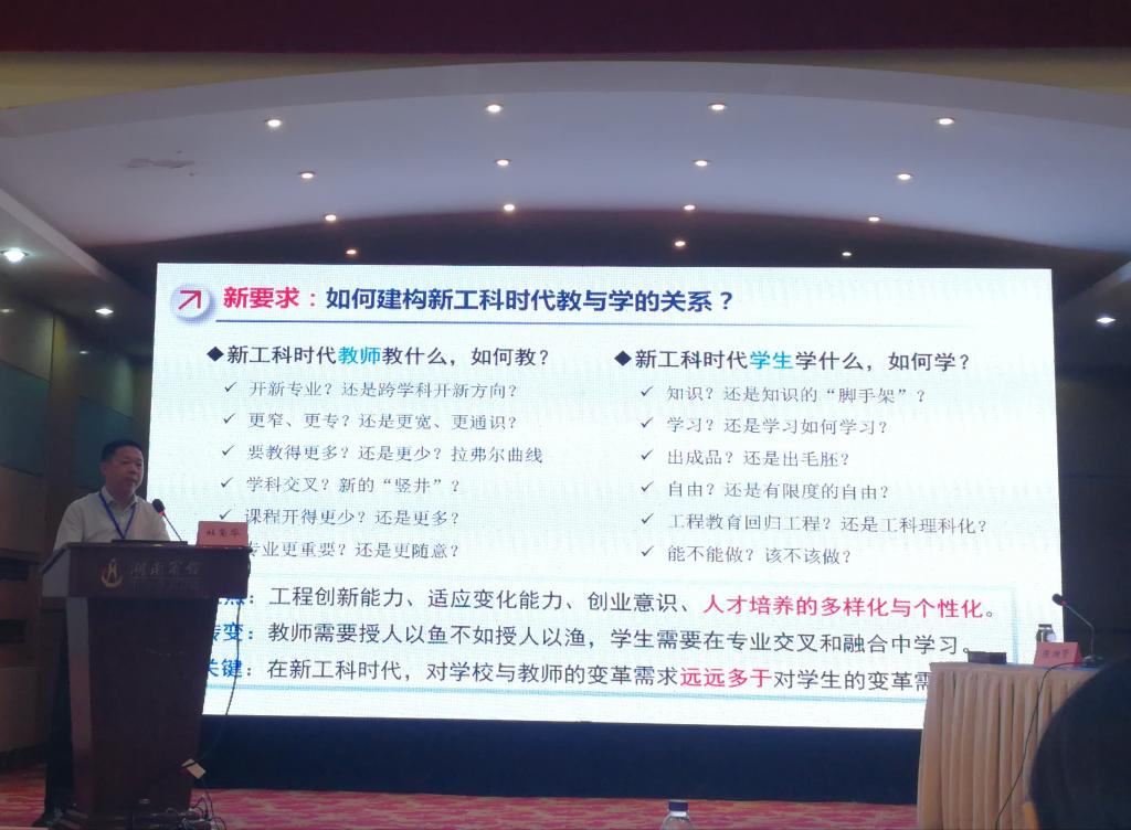 6月30日,由湖南省教育科学研究院主办,湖南省教科院高等教育研究所承办的湖南省高等教育热点论坛在长沙湖南宾馆召开。本次会议以“一流本科教育”为主题,省教育厅副厅长葛建中、省教育科学研究院院长石灯明、教育部教育发展中心战略发展部主任马陆亭、南京大学教务处处长邵进等领导专家出席本次会议。永利官网汽车与机械工程学院院长杜荣华应邀到会作“地方高校新工科人才培养模式思考与实践”的专题报告。