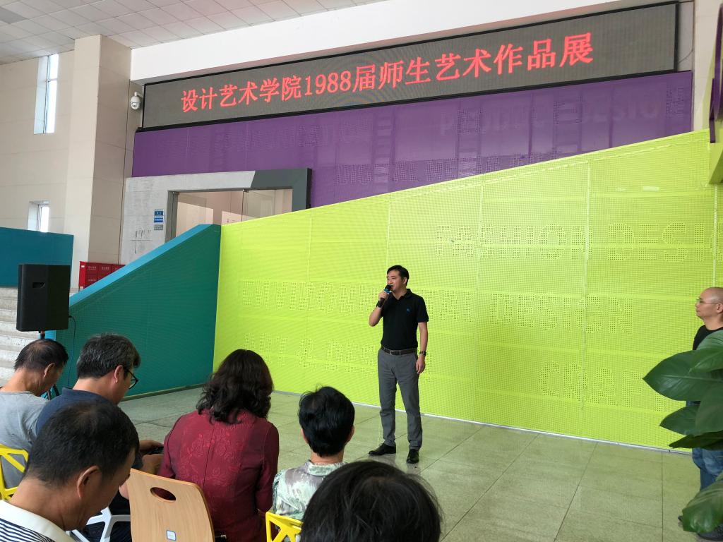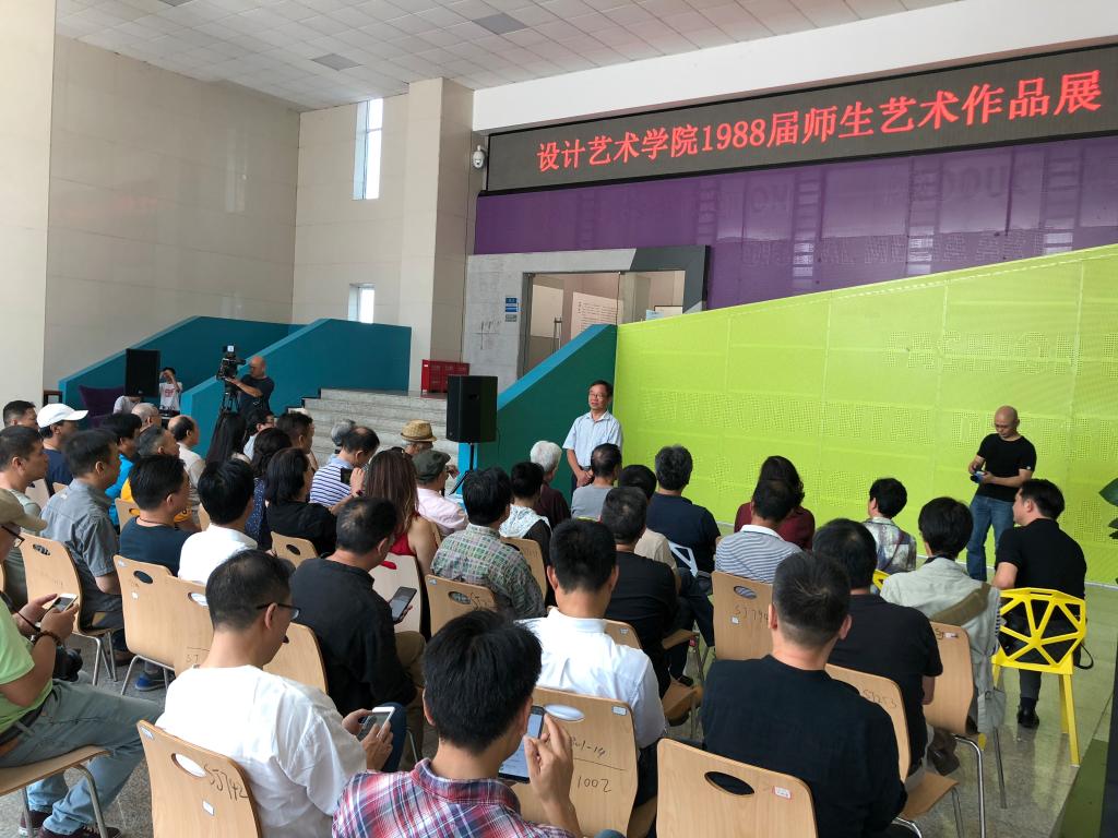 9月9日上午,展览于艺术学院展厅开幕,校友总会副会长黎正稳,校友中心主任张美红,艺术学院何辉教授,院长王健,副院长刘卫东、欧阳国辉、张剑,院长助理王龙,原88届班主任、任课老师、1988届校友代表等近百人出席了开幕式。开幕式由1988届校友刘鸿和设计艺术学院院长助理王龙共同主持。