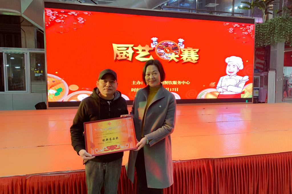 经过一个半小时的激烈角逐,最终东方龙餐饮公司夺得综合成绩第一名,甘饴园自营食堂把创新菜品奖收入囊中。