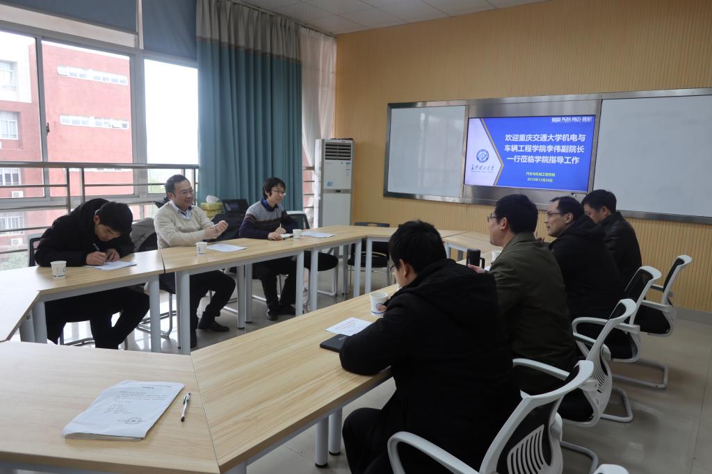 12月26日,重庆交通大学机电与车辆工程学院副院长李伟一行来永利官网汽机学院调研。副院长何志勇,党委委员唐宏宾,机电工程系系主任陈书涵、支部书记张鹏参加了调研会,会议由何志勇主持。