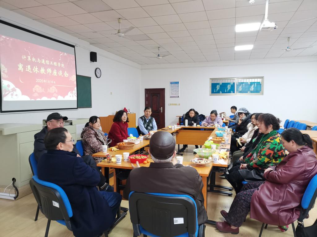 1月14日下午,计通学院在金盆岭校区五教405举行离退休教师座谈会。院长王进、院党委副书记陈华,关一飞、姜腊林等11名离退休老教师代表参会。