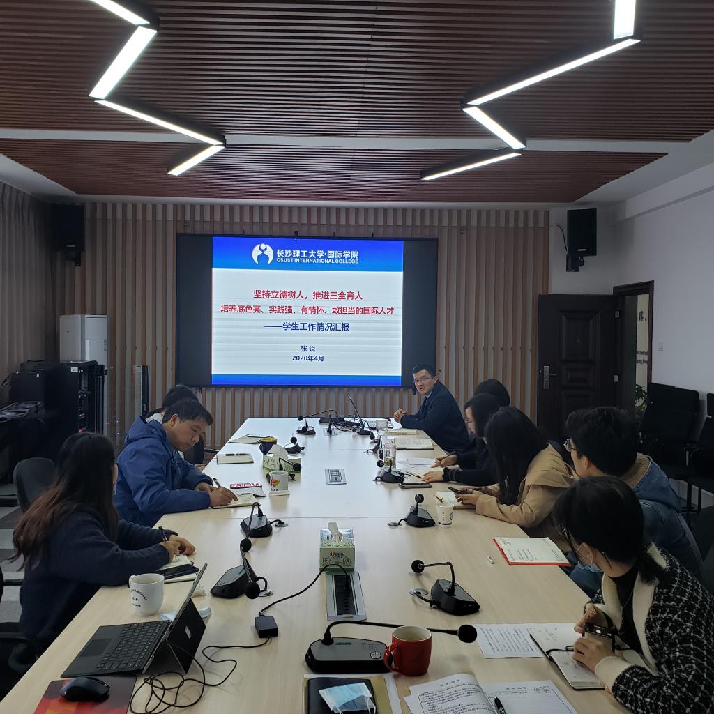 为深刻领会习近平总书记的教育思想要义,找准学院在贯彻教育发展新思想新理念新战略的切入点、着力点和落脚点,扎实推进学院“三全育人”工作,4月23日上午,国际学院党总支召开本年度第二次中心组理论学习,专题研讨学生工作的现状与对策。院党总支书记刘安生主持并作辅导报告,副书记兼副院长张锐和副院长甘海鹰作中心发言,全体学生辅导员列席学习。