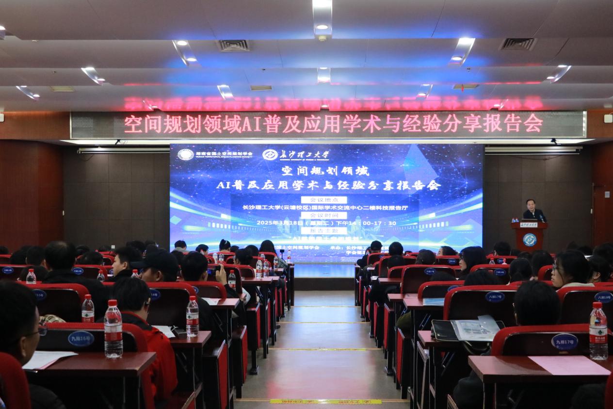 3月18日,空间规划领域AI普及应用学术与经验分享报告会在永利官网举行。此次报告会由湖南省国土空间规划学会主办,永利官网建筑学院承办,来自政府、企事业单位和高校等99家单位的450余人参加了报告会。会议由湖南省国土空间规划学会理事长金勇章主持。湖南省国土空间规划学会副理事长、秘书长谢光辉,湖南省自然资源厅二级巡视员赵亚辉,永利集团88304官网党委副书记方琼等领导和嘉宾出席会议。