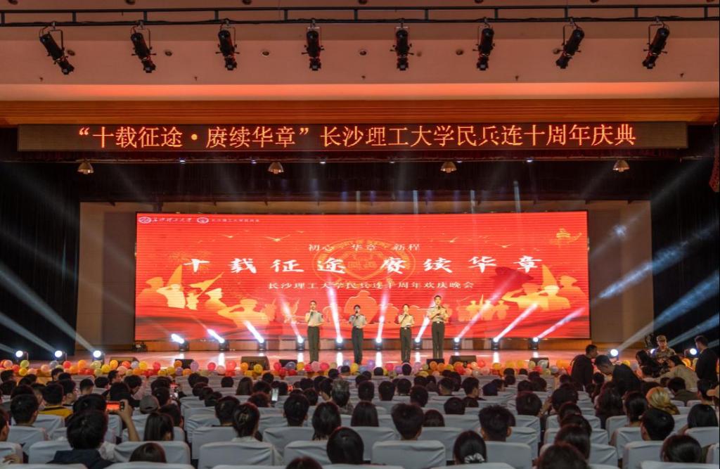“迎着梦想的方向,凝聚决心和力量……”随着全体合唱的歌声响起,4月12日晚,民兵连十周年庆典晚会在金盆岭校区五教大礼堂开幕。校学生工作部、人民武装部相关负责人,各学院副书记和辅导员,近200名往届民兵连校友以及全体民兵连同学参加活动。
