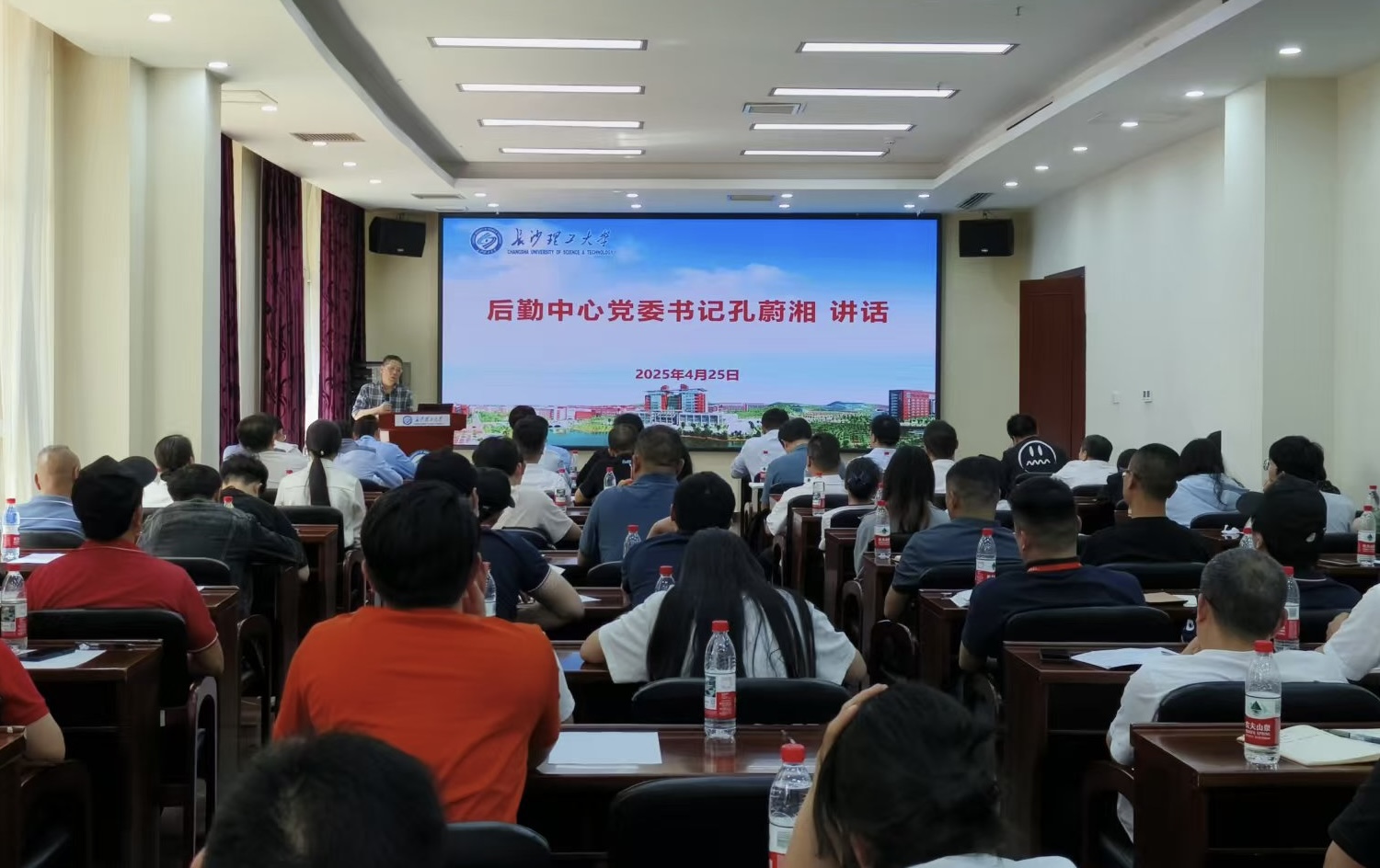 4月25日下午,学校食品安全管理办公室在国际学术交流中心组织开展了新学期食品安全工作专题培训,特邀长沙市天心区暮云街道市场监督管理所所长黄启、湖南省产商品质量检验研究院专家张露苗主讲。后勤中心党委书记孔蔚湘、副主任阳伶,继续教育学院党委副书记任艮丰出席培训,食品安全管理员、食品安全工作骨干及后勤服务质量学生监管队员等100余人参加培训。