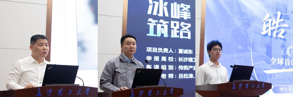 科创竞赛获奖项目代表随后进行了路演展示和经验分享。“冰峰筑路”——世界屋脊冻土区高性能沥青领航者,“皓途智检”——全球首创路面压实智能检测机器人等获奖团队指导教师代表李希,团队成员夏诚东、王成博分别介绍了项目成果并分享了参赛经验。