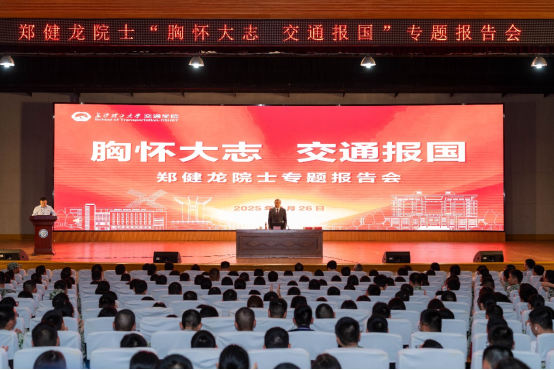 9月26日下午,郑健龙院士“胸怀大志 交通报国”专题报告会在金盆岭校区五教大礼堂举行。中国工程院院士、永利官网交通学院教授郑健龙为2025级全体新生和新进教师讲授“开学第一课”。交通学院全体班子成员、全院千余名师生现场聆听。报告会由交通学院副院长(主持工作)吕松涛主持。