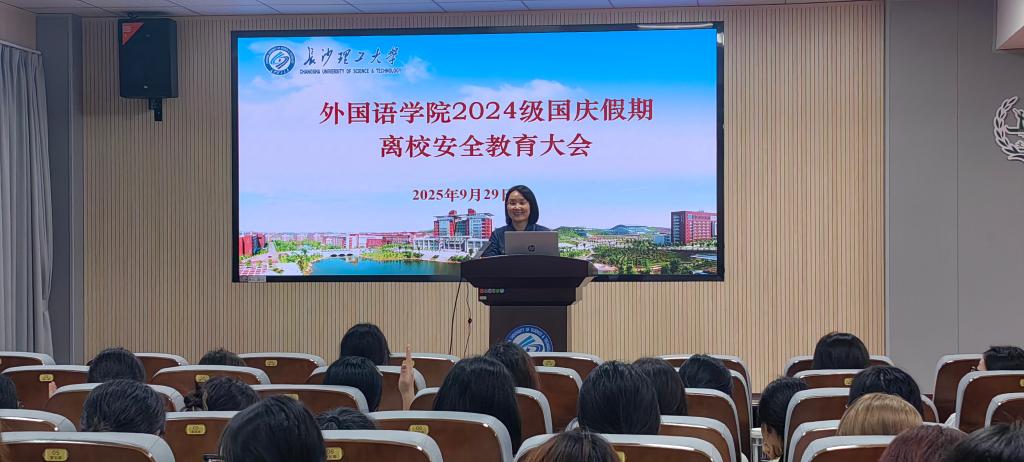 为总结2024级本科生上一学年的成长与收获,部署新学期的安排,并重点做好国庆假期的安全稳定工作。外国语学院于9月29日下午在金盆岭校区3教321报告厅召开2024级年级大会。学院党委副书记周芳、年级辅导员郭恒及2024级全体同学共同参会。郭恒对2024-2025学年的年级工作进行了系统梳理与总结,从学风建设、思想动态、实践... 【2025-09-30】