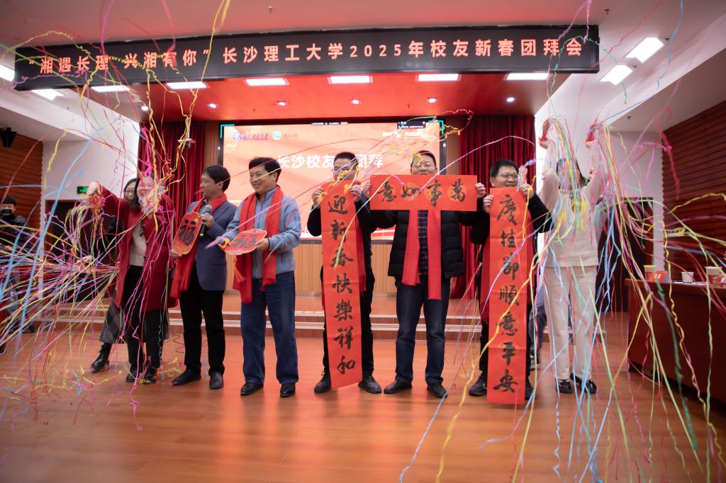 1月18日上午10点,永利集团88304官网在云塘校区一办九楼会议室举行了2025年“校友回湘”新春团拜会。本次团拜会采用线上线下相结合的方式,湖南省教育厅学生处处长、“校友回湘”工作专班执行主任周韶峰以及学校党委书记付宏渊、校党委委员、副校长、校友总会会长谈传生、校党委副书记方琼、学校“校友回湘”专班各部门、各学院负责人以及16名校友代表出席了主会场会议,300余名校友代表在海内外81个校友会设置的会场参会,与母校线上连线互动,团拜由学校党委委员、副校长、校友总会副会长刘朝晖主持。