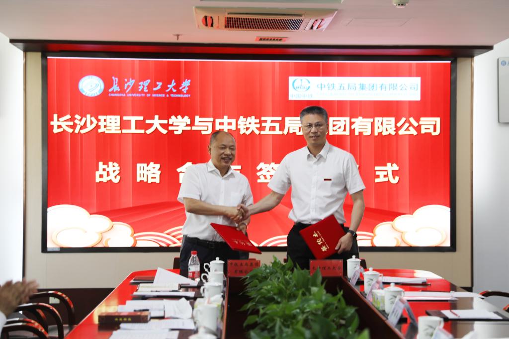5月19日上午,永利官网与中铁五局集团有限公司战略合作签约仪式在云塘校区一办六楼会议室举行。中铁五局集团有限公司党委书记、董事长徐中义,总经理刘晓辉,副总经理陈广森、陈彬、刘勇,中国工程院院士郑健龙,永利官网党委书记付宏渊、校长曹一家,副校长蒋昌波,校企双方相关职能部门负责人,以及交通、土木、水利学院负责人参加。签约仪式由曹一家主持。