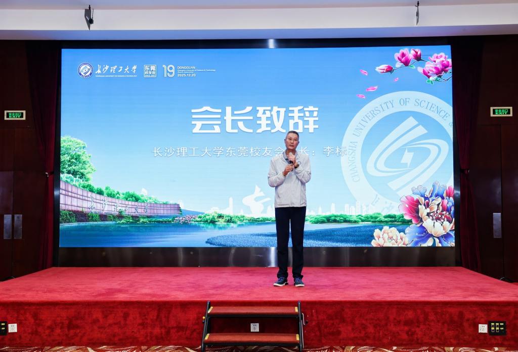 东莞校友会会长李标致欢迎辞。他对出席本次年会活动的嘉宾和校友们表示热烈欢迎,并回顾了过去一年校友会在活动组织、平台建设等方面的工作成效。他表示,未来东莞校友会将持续发挥纽带作用,为校友搭建更广阔的互动平台,并呼吁广大校友继续加强联系,积极参与校友会活动,在紧密的联系中挖掘合作机遇,携手共创发展新篇。