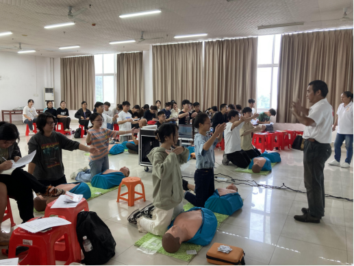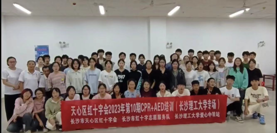 为培养大学生社会责任感,提高自救互救能力,掌握基本急救知识和技能,倡导“急救为人人,人人会急救”的理念。2023年9月24日,永利集团88304官网后勤服务保障中心卫健办联合天心区红十字会组织开展了心肺复苏术(CPR)和自动体外除颤器(AED)急救知识与技能培训,培训由校医院副院长、卫健办副主任雷鹂主持,“爱心中转站”社团骨干和积极报名参与的志愿者合计60余名学生参与了培训。
