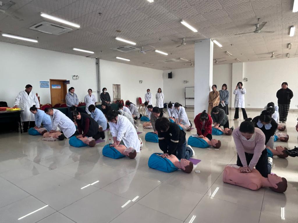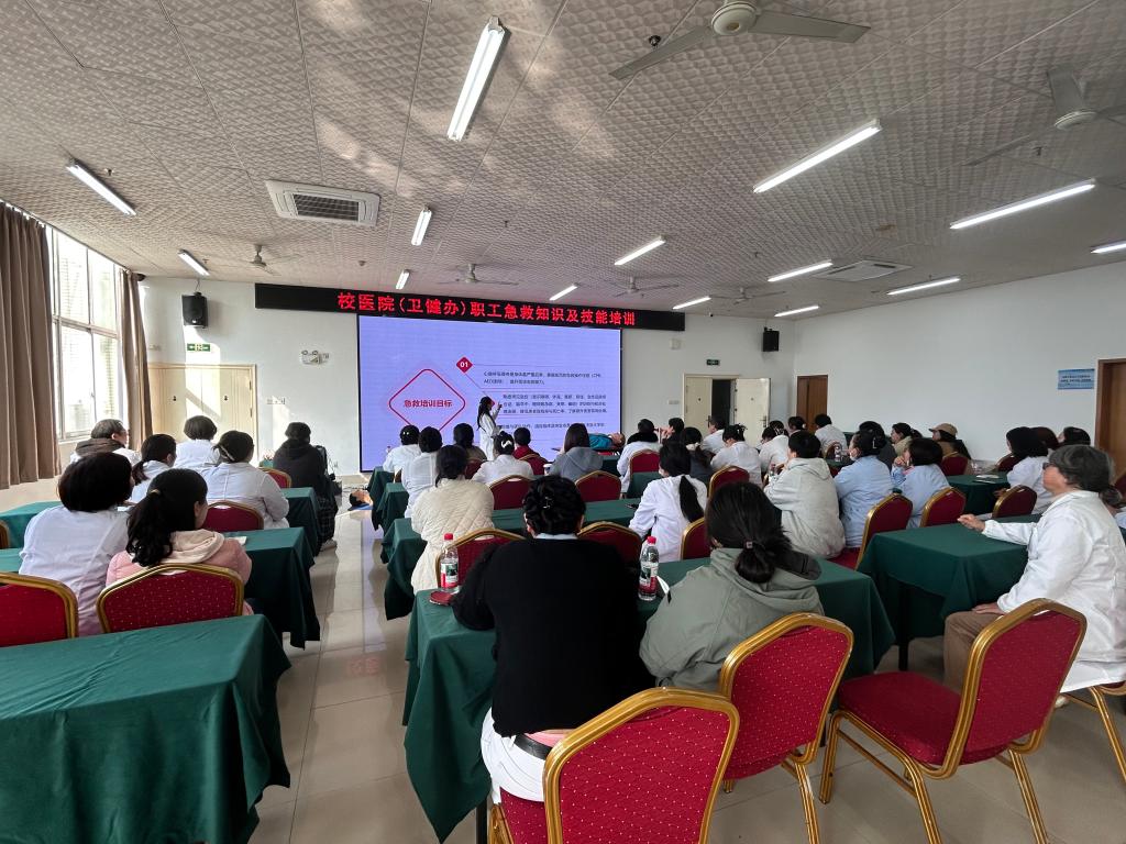 为深入贯彻2026年3月省教育厅新春第一会关于“健康第一”的工作部署,进一步加强健康校园建设,提升校医院应急处置能力,3月11日和13日全天,校医院(卫健办)在健康教育活动室组织开展了新学期职工心肺复苏急救知识和技能复训。本次培训由卫健办雷鹂老师主讲,全体校医院职工分批次参加了培训与考核。