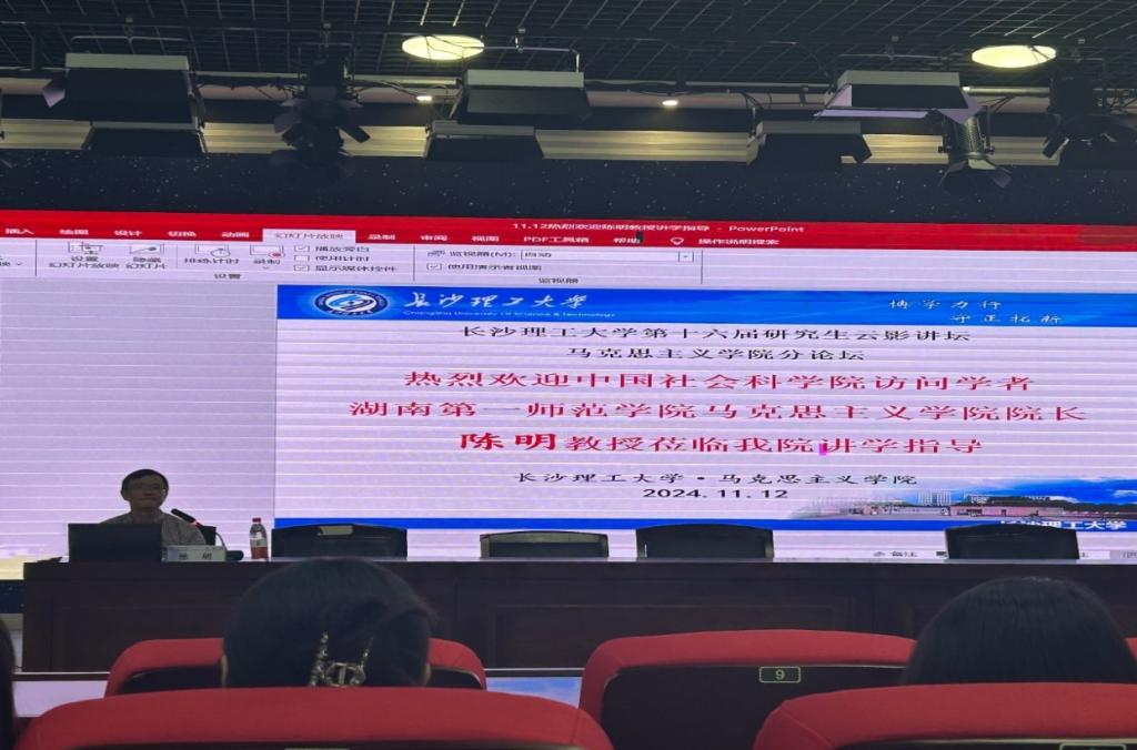 11月12日下午,永利官网第十六届研究生云影讲坛之“红色华章,共筑新时代”在云塘校区文科楼B300报告厅顺利举行。本次讲座以“当好大先生,育好栋梁才”为题,由湖南第一师范学院马克思主义学院陈明教授主讲,永利官网马克思主义学院党委书记陈万球担任主持人,院学生工作办公室主任曾蓓及2023级、2024级的全体研究生参加。