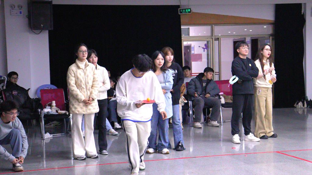 随后,成员们被分成多个小组,共同参与了一系列趣味盎然的游戏环节。活动一共设置了气球传杯、你划我猜、一圈到底、乒乓球传递、气球传递五个游戏环节,对于团队成员而言,这些游戏不仅让他们在欢声笑语中享受乐趣,还促进了团队合作与协调能力的提升。中场表演环节时,李子怡、肖夏琛、邱漂、汪汀表演的舞蹈再次点燃了现场的热情,将活动氛围推向了新的高度。在所有游戏环节圆满结束后,主席团成员为各个小组颁发了精美的竞赛礼品,以此表彰他们在游戏中的出色表现与团队协作精神。随后,活动进入尾声,全体成员合影留念,共同记录下这一难忘的时刻。