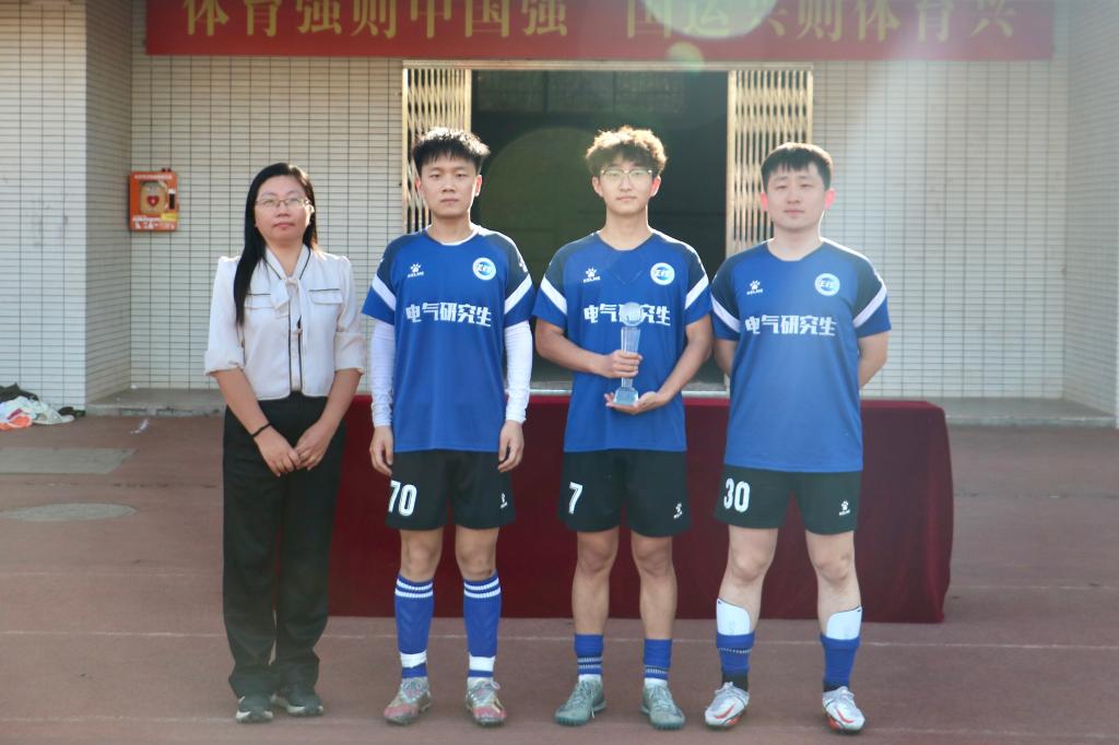 吕倩、李佳美为获奖集体和个人进行颁奖。能源与动力工程学院代表队获得此次足球赛冠军,电气与信息工程学院代表队获得亚军,材物设联队获得季军;最佳啦啦队获得者为计算机学院与经济与管理学院联合啦啦队、水利与海洋工程学院啦啦队;能源与动力工程学院毛梓欢获得最佳射手称号;交通学院侯育东等9名同学获得优秀运动员称号。