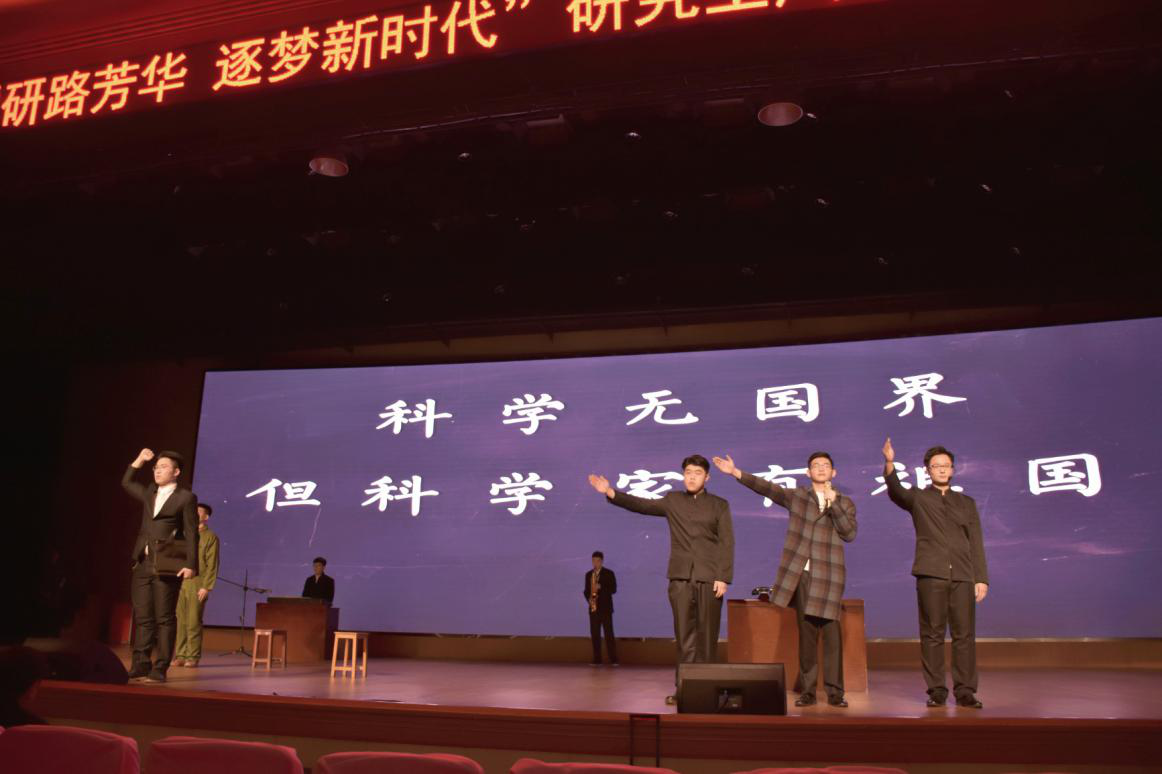 “国家有力量,民族有希望,人民有梦想,世界有桥梁”诗朗诵《写给未来的你》,以平实又铿锵有力的声音演绎了新时代研究生立志用梦想点亮未来的梦想与决心。情景剧《共和国之恋》通过再现郭永怀以身许国的感人故事,感怀老一辈科学家为祖国建设鞠躬尽瘁死而后已的精神,激励新时代研究生以他们为榜样服从国家需要,投身科学研究。