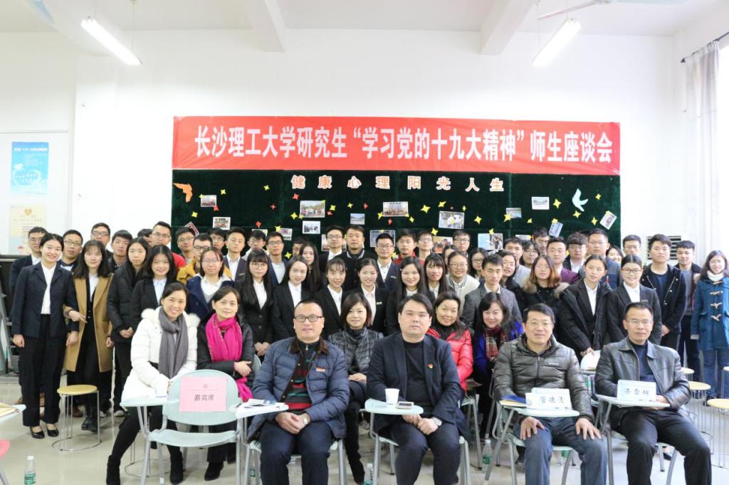 为深入学习、准确把握、认真贯彻好十九大精神,用习近平新时代中国特色社会主义思想指引研究生学习科研,加快推进永利集团88304官网“百强”、“双一流”建设。12月20日,永利集团88304官网在云塘校区举行了以“贯彻十九大精神,提升学术科研能力,为长理‘双一流’和‘百强’建设出力”为主题的研究生座谈会。永利集团88304官网马克思主义学院党委书记、博士生导师易显飞教授受邀为在场师生进行了主题为“学习十九大精神,为长理建设‘双一流’,实现‘百强梦’不懈奋斗”十九大宣讲,研究生院院长管德清、副院长湛雪辉、副院长兼研工部部长刘亚辉以及研究生院全体老师、校研会干部、各培养学院优秀研究生代表共计八十余人参与了学习及交流。