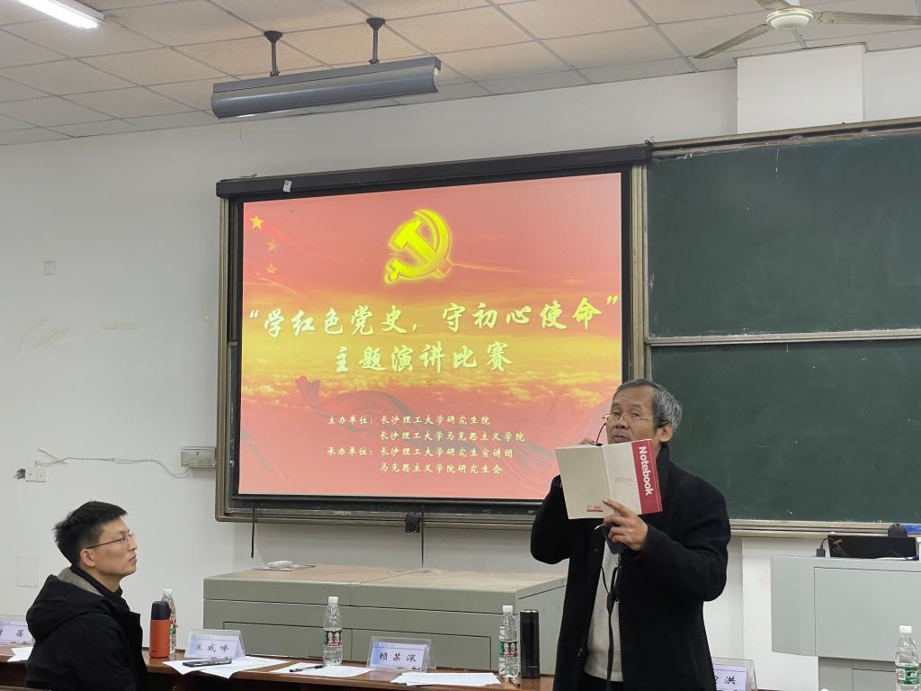 为深入学习贯彻习近平总书记在庆祝中国共产党成立100周年大会重要讲话和党的十九届六中全会精神,推动党史学习教育走深走实,提升研究生思想政治教育工作质量和水平。由永利集团88304官网研究生院和马克思主义学院主办的研究生“学红色党史,守初心使命”主题演讲比赛初赛于11月28日-12月2日分别在金盆岭4教109教室和209教室举行。马克思主义学院赖某深、文贵全、钟芙蓉、王威峰、陈方芳、曾蓓等老师,研究生宣讲团副团长黄寅洪以及校研究生辩论队队长聂伟等同学出席了比赛并担任评委。