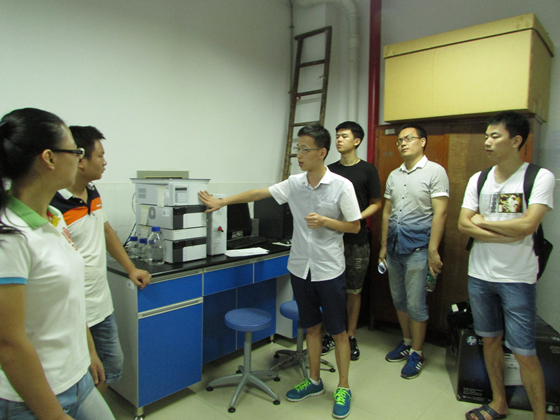 首先,张跃飞深入浅出的介绍实验室的历史沿革和主要科研项目及科研成果。从科研的角度就当前我国化学领域面临的前言问题和同学们进行了探讨。接着,各实验室负责人与同学们进行了深入交流,讲解了实验仪器的基本原理,并向同学们展示相色谱仪,液相色谱仪,紫外光谱仪等仪器的操作步骤。