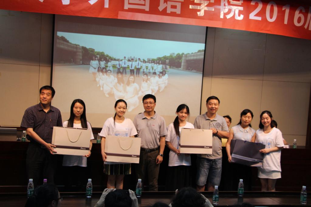 6月11日下午三点,外国语学院2016届毕业典礼在金盆岭校区12教200隆重举行。院长吴迪龙、副院长周雪婷、院长助理季红琴和学院原党委副书记黄永华、王任飞在主席台就坐,全体硕士生导师、专业教师和学院各行政办公室负责人出席。典礼由党委副书记陈仁凯主持。