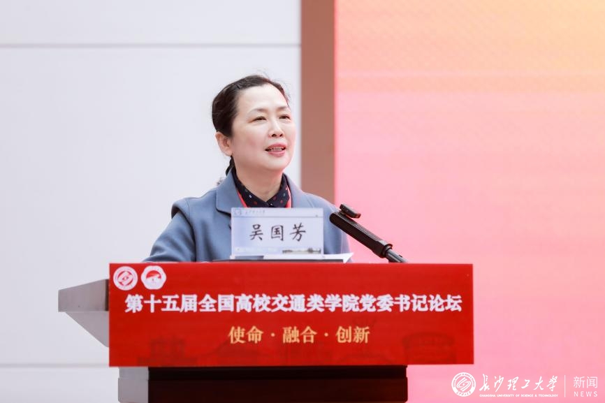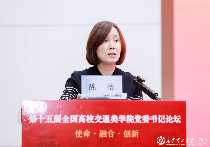 论坛理事长、东南大学交通学院党委书记陈怡在致辞中表示,面对教育强国、科技强国、人才强国及交通强国建设的新使命,交通类学院党建工作要紧扣时代脉搏,弘扬新时代交通精神,落实立德树人根本任务,深化产教融合,增强创新意识,培育时代新人,推动党建与事业发展深度融合。