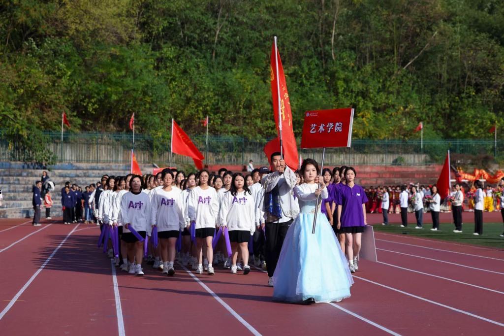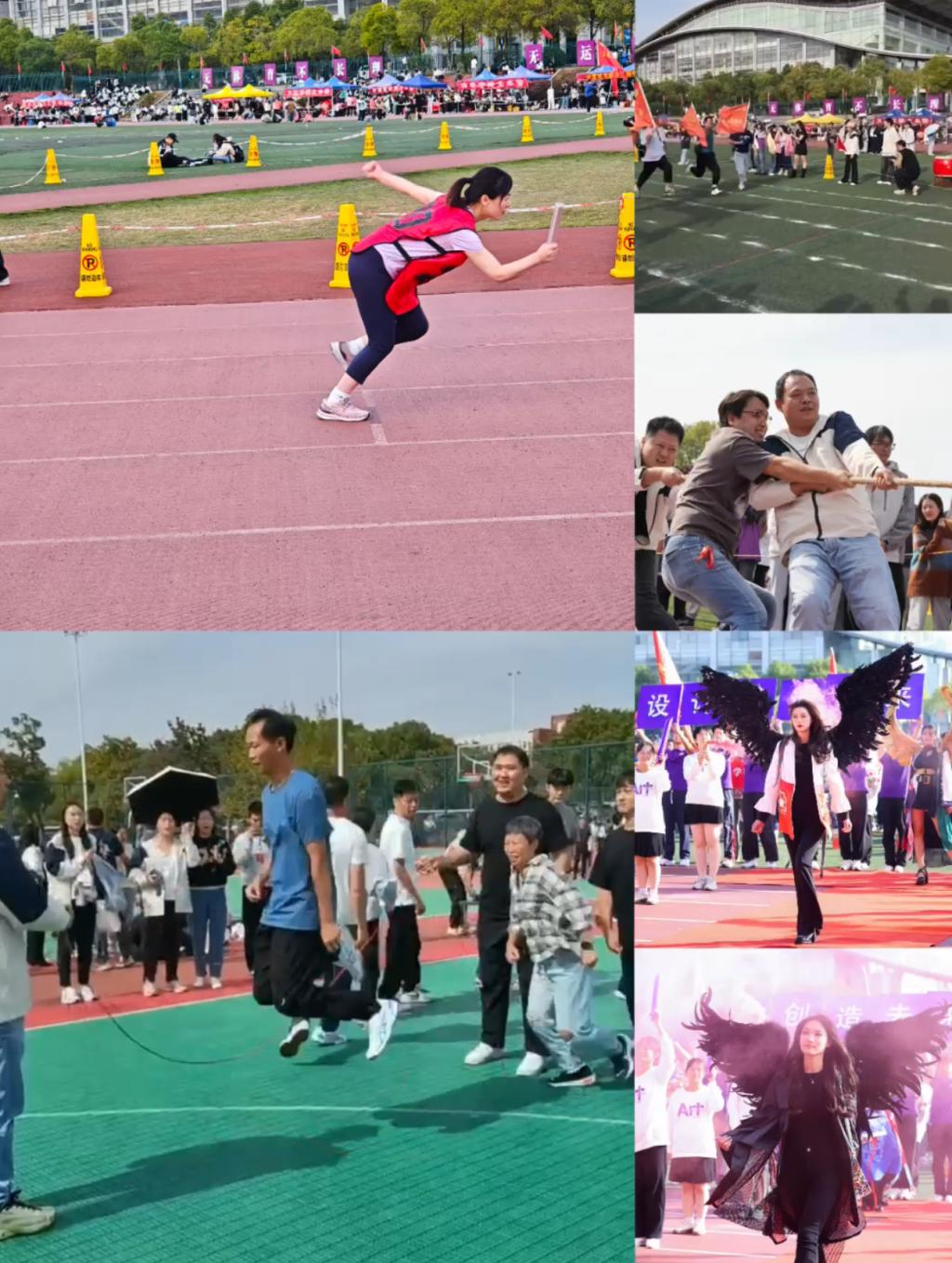 运动会旨在提升师生身体素质以及磨炼拼搏精神,赛场上,各项比赛紧张而激地进行着。径赛跑道上,艺术学子如离弦之箭,向着终点飞奔而去,他们速度与激情点燃了全场,每一次努力,每一次拼搏都是对自我的超越。跳高、跳远、铅球、飞盘的比赛中运动员们优美的弧线,他们每一次的跳跃与投掷都是力量与技巧的展现。团队项目50m迎面接力、8*100m师生接力、师生拔河比赛、跳长绳比赛这些集体项目中生动再现了优良的团队协作精神,经过激烈的角逐,设计艺术学院斩获了跳长绳集体项目全校第一,50m迎面接力全校第三的好成绩。