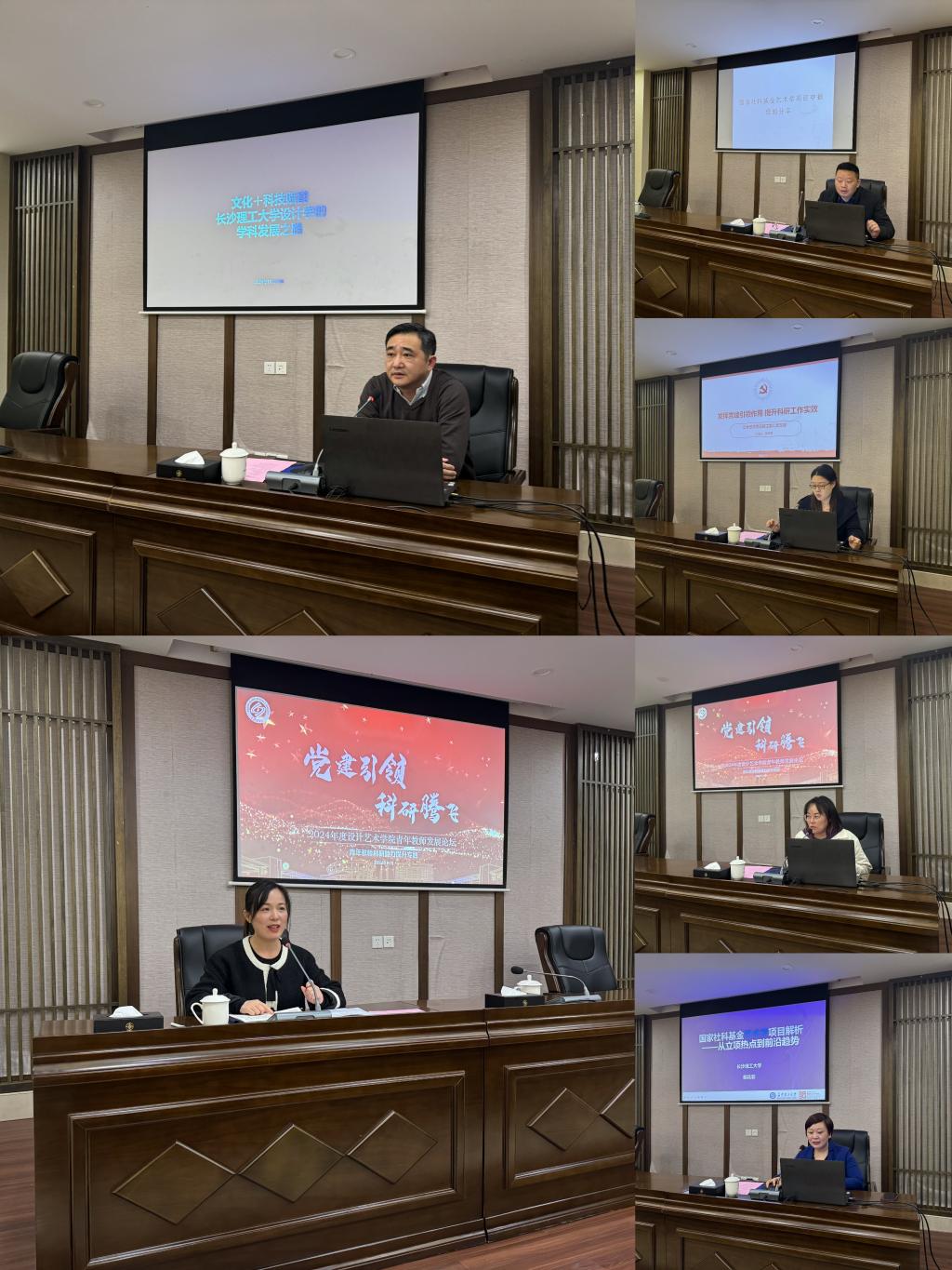 科研副院长蔡花菲、学院学术委员会主任李正庚、教工党支部书记陈书芳和青年博士代表陈聆希分别以《国家社科基金艺术学项目解析—从立项热点到前沿趋势》、《国家社科基金艺术学项目申报经验分享》、《发挥党建引领作用提升科研工作实效》、《从学术焦虑到学术动力》等为题作专题发言,主要围绕科研项目申报要点、前沿课题挖掘、研究方法创新等多方面开展交流,并结合实际案例,深入浅出地为青年教师们答疑解惑。