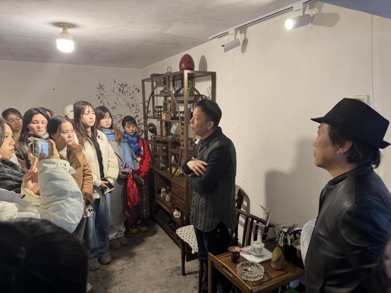 随后师生一行前往长沙后湖国际艺术区小裘工作室,肖小裘副教授分享了个人多年的创作心得,鼓励同学们要敢于尝试新事物,传承中华优秀传统文化,坚定自己的创作信心。两位艺术家展现出的专业态度与敬业精神为同学们树立了榜样,活动不仅让同学们收获了丰富的专业知识,更让同学们感受到成为一名真正艺术家应该具备的责任感与使命感,为推动我国传统手工艺文化的持续发展与繁荣尽微薄之力。