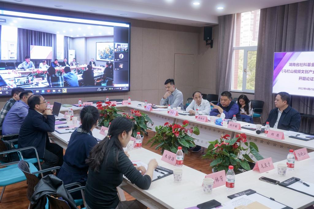 4月21日,由院长王健教授主持的湖南省哲学社会科学基金重大项目“马栏山视频文创产业园建设研究”的开题论证会暨专家交流会在永利集团88304官网设计艺术学院顺利召开,会议采取线上和线下相结合的方式进行。丛书总编辑、《新湘评论》杂志社社长任晓光,中国电子视像行业协会副秘书长董敏,省广播电视局党组副书记、副局长、一级巡视员毛良才,省委宣传部文改办主任阳芳菲,省委宣传部文改办副主任龚林芳,省广播电视局一级主任科员陈航作为评审专家出席本次论证会。