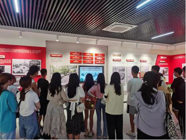 为了增强学院研究生爱国爱党,敬校荣校的意识,深入了解永利官网办学历史。10月3日上午,设计艺术学院组织2022级研究生新生前往学校“三全育人”教育基地进行了参观学习。